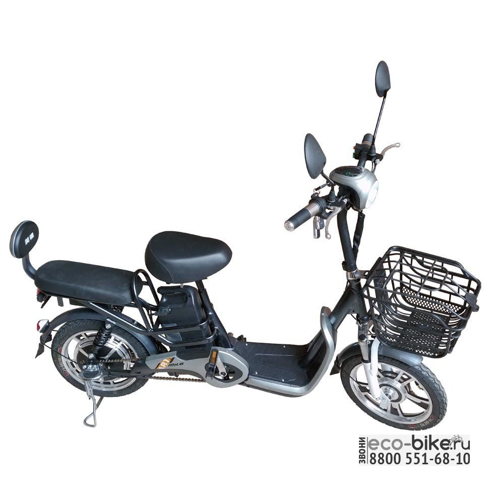- оснащен 350 ваттным мотором, разгоняющий девайс до 40 км/ч;