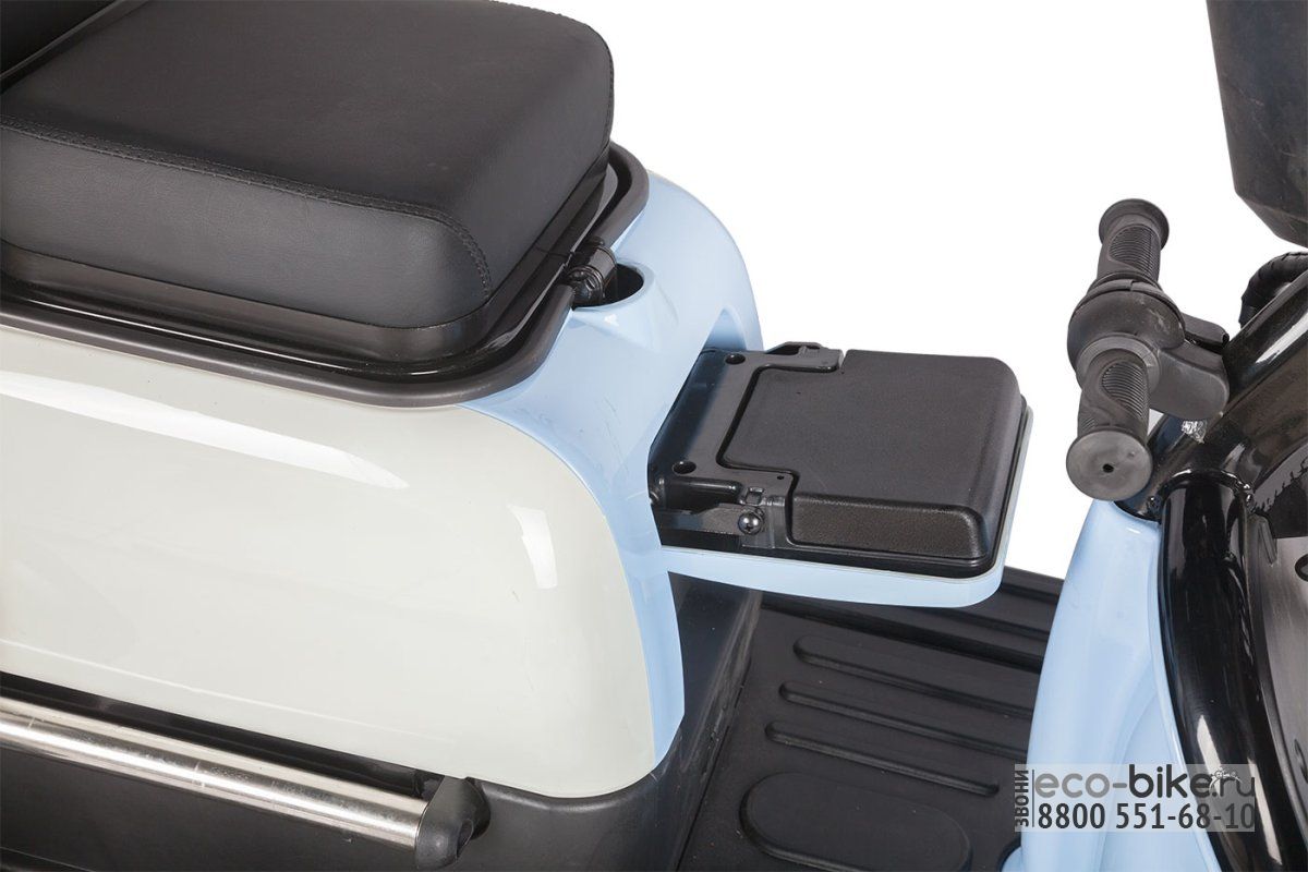 Металлическая корзина на руле и вместительный багажный отсек под пассажирским сиденьем позволяют перевозить покупки, личные вещи или рабочий инвентарь без лишних хлопот.