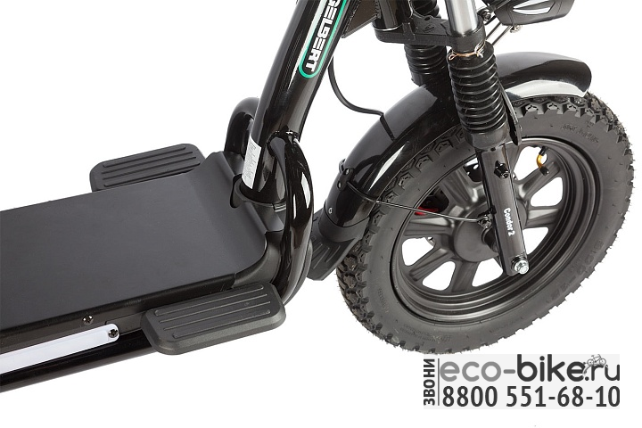 Gelbert Condor 2 оснащен энергичным электромотором мощностью 240 Вт и напряжением 60 В, что обеспечивает уверенный разгон и плавную езду. Диаметр колес составляет 16 дюймов с шириной 3 дюйма, что гарантирует отличное сцепление и комфорт даже на неровных дорогах.