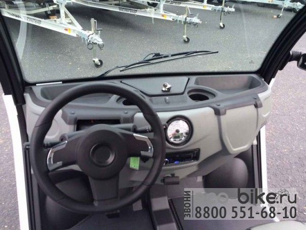Двери мягкие и жесткие, панорамная крыша, багажник закрытого типа, держатель клюшек для гольфа, бортовой кузов, усиленные бампера, ручки безопасности, регулировка рулевой колонки, зеркала заднего вида, молдинги на пороги, осветительный плафон, брызговики, чехол для хранения, стерео система, омыватель стекла, подогрев сидений, отопитель лобового стекла, вентилятор, парктроник, солнечные модуль на крышу, проблесковый маячок, колеса на литых дисках R14.