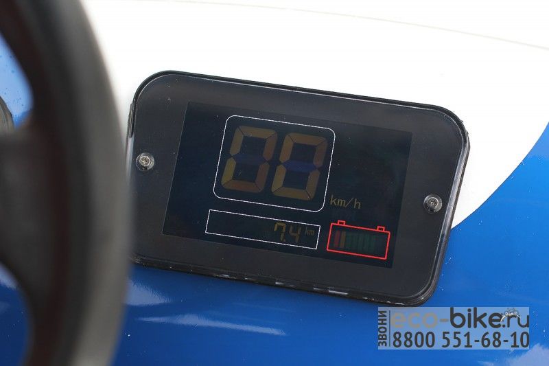 Скорость - 30 км/ч, дальность - до 60 км, грузоподъемность - 350 кг, вес- 600 кг, мощность - 3.7кВт